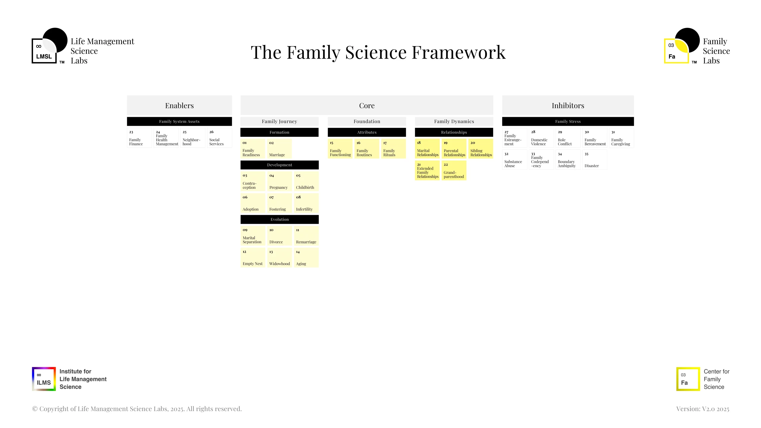 The Family Framework was developed using multidisciplinary approaches that combine the body of knowledge of Family Science and other disciplines, such as Psychology, Sociology, and Economics.