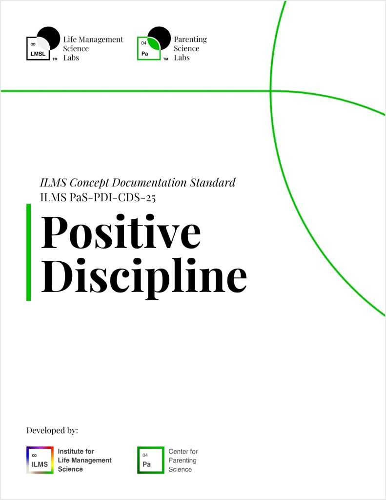 Positive Discipline ILMS Concept Documentation Standard ILMS PaS-PDI-SD-24 is a comprehensive guide to discovering and understanding the essential aspects of positive discipline within The Parenting Science Framework Fundamentals. This is a structured document describing the best way to navigate and understand the element. It outlines and explains concepts, such as: definitions, related concepts, taxonomy, misconceptions, challenges, habits and recommended practices.